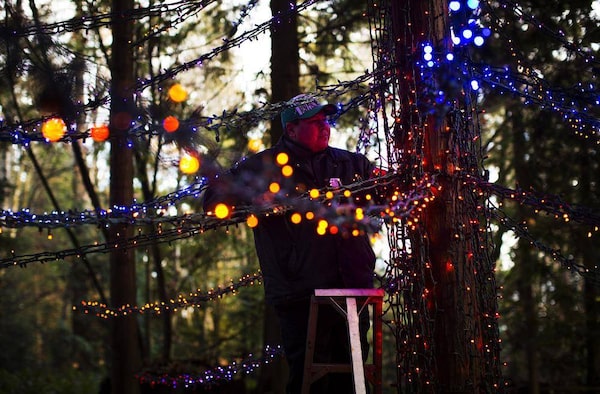 Tony Hamaliuk a foreman with the Vancouver Park Board makes a Christmas Tree out of stings of Christmas lights November 26, 2013 as staff and volunteers set up for Bright Nights in Stanley Park.John Lehmann/The Globe and Mail