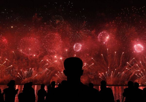 A North Korean security guard watches fireworks in Pyongyang to celebrate 100 years since the birth of the North Korean founder Kim Il Sung on Sunday, April 15, 2012.Vincent Yu