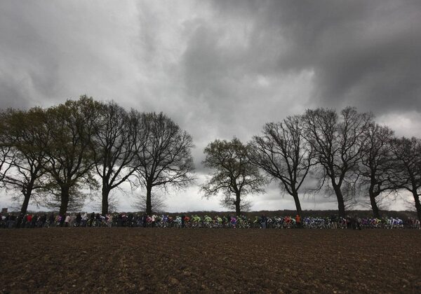 The pack passes near the city of Gulpen during the 47th edition of the Amstel Gold Cycling race over 256,5 kilometers (159.4 miles) with start in Maastricht and finish in Valkenburg, southern Netherlands, Sunday April 15, 2012.Peter Dejong