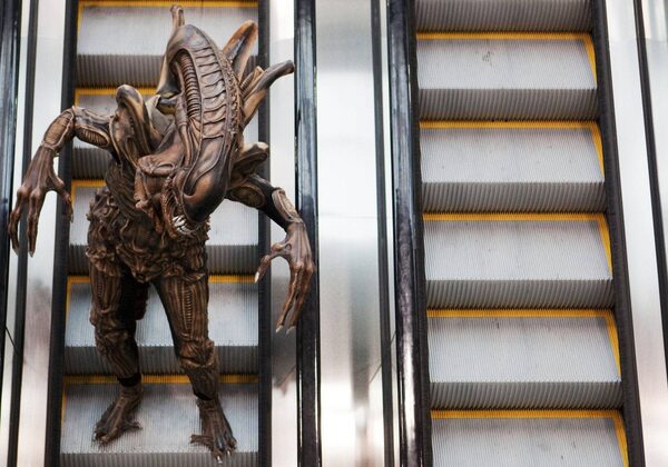 A person dressed as a creature from the sci-fi movie Aliens, rides an escalator during the Toronto Comic Con event at the Metro Toronto Convention Centre on Sunday, April 15, 2012.