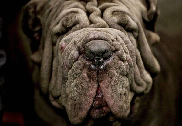 Neapolitan mastiff Trinity, of Ontario, Canada, waits for judging at the 136th annual Westminster Kennel Club dog show in New York.