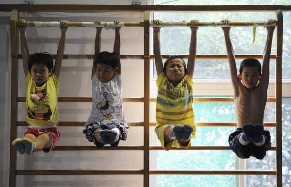 Young divers attend a training session at a gymnasium in Hefei, Anhui province July 17, 2012.JIANAN YU/Reuters