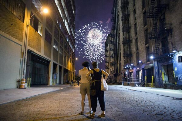 Spectators watch as fireworks light up the sky over the Hudson River during the Macy's Fourth of July fireworks show in New York.John Minchillo/The Associated Press