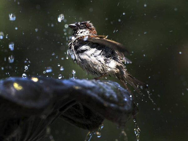 A bird cools off from the extreme heat in a water fountain at St. James Park in Toronto.Nathan Denette/The Canadian Press