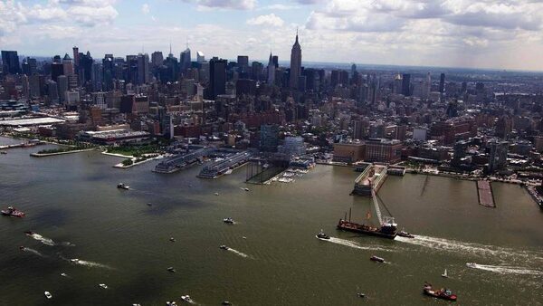 The Space Shuttle Enterprise passes the Statue of Liberty as it rides on a barge in New York harbor, June 6, 2012. The Space Shuttle Enterprise was being moved up the Hudson River to be placed at the Intrepid Sea, Air and Space Museum.LUCAS JACKSON/Reuters