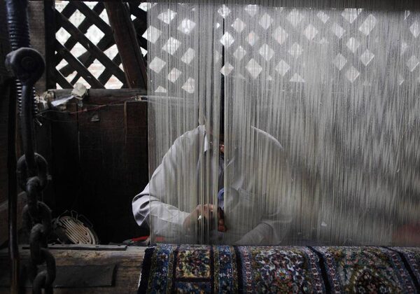 Hilal Ahmed Bhat, a traditional Kashmiri carpet weaver works at a factory in Srinagar, India, Wednesday, June 6, 2012. A carpet weaver in India earns around three US dollars a day..Dar Yasin/The Associated Press