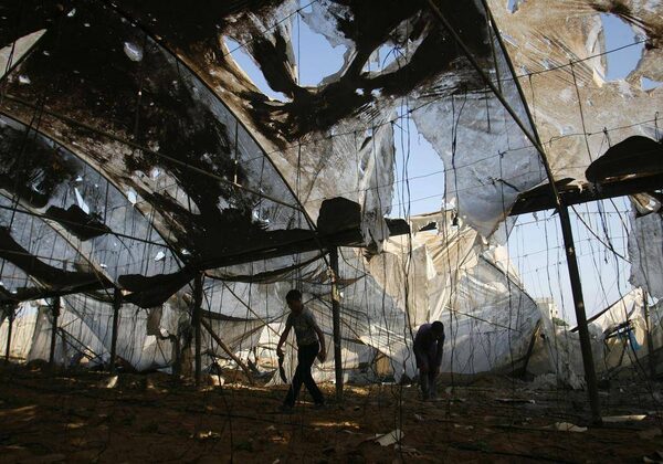 Palestinians look at the damage left after an Israeli strike hit a chicken farm in Rafah, southern Gaza Strip, Wednesday, June 6, 2012. Palestinian official said two Palestinians were wounded in Israel's airstrikes in Gaza overnight.Eyad Baba/The Associated Press