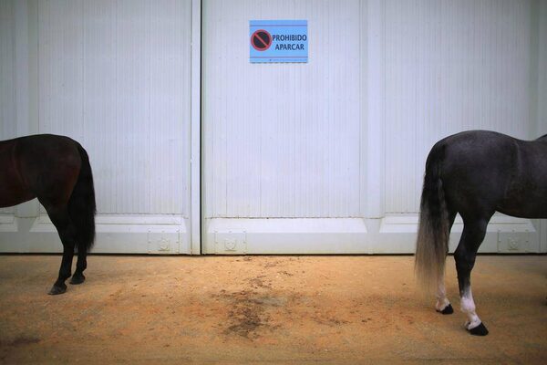 Horses are seen next to sign which reads "No parking" during the Sicab International Pre Horse Fair in the Andalusian capital of Seville, Spain. The show runs till November 25 and is dedicated exclusively to Spanish thoroughbreds.Marcelo del Pozo/Reuters