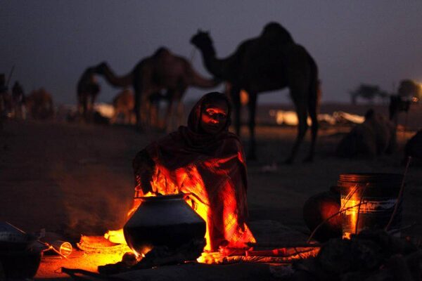A woman prepares food early morning at the annual cattle fair in Pushkar, Rajasthan, India. The annual camel and livestock fair attracts thousands of livestock dealers who bring thousands of camels, horses, and cattle.Rajesh Kumar Singh/The Associated Press