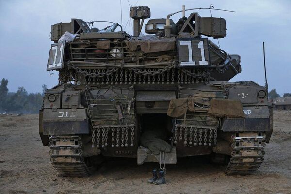 An Israeli soldier sleeps inside a tank at a staging area near the Israel Gaza Strip Border, southern Israel. The Israeli military has been pounding Gaza with at least 30 strikes overnight, hitting government ministries, smuggling tunnels, a banker's empty villa and a Hamas-linked media office. Meanwhile, U.S. Secretary of State Hillary Clinton is in the West Bank, trying to help negotiate a truce between Israel and the militant Hamas, which controls the Gaza Strip.Lefteris Pitarakis/The Associated Press