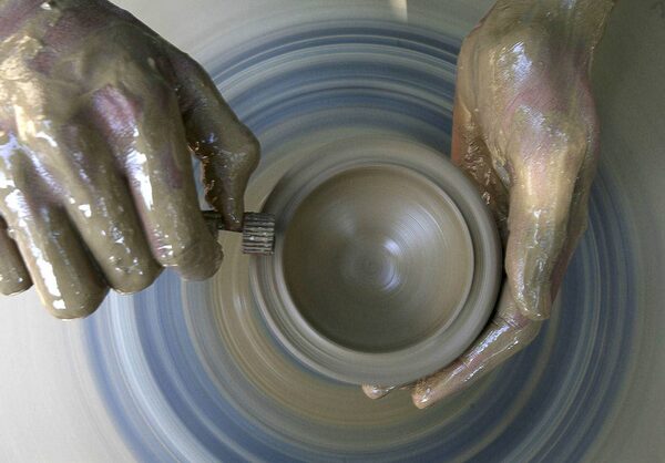 A potter makes an earthen lamp at a workshop for the upcoming Diwali festival in Jammu, India.