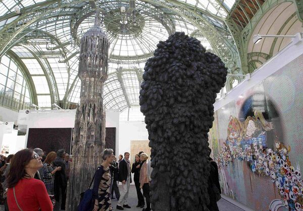 Visitors study the installations at the International Contemporary Art Fair (FIAC) at the Grand Palais in Paris.