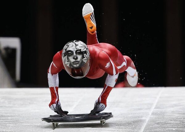 Canada's Sarah Reid speeds down the track during an unofficial women skeleton progressive training at the Sanki sliding center in Rosa Khutor, a venue for the Sochi 2014 Winter Olympics near Sochi, February 5, 2014.MURAD SEZER/Reuters
