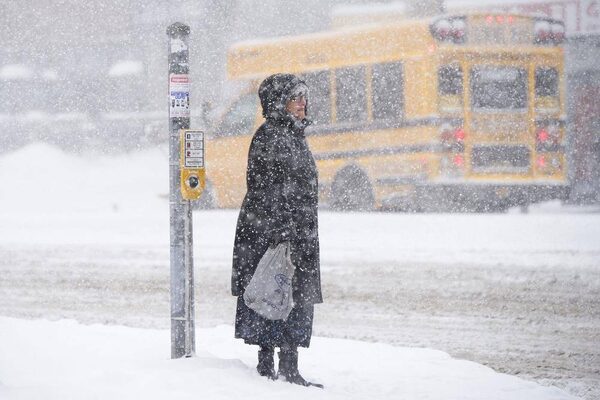 A pedestrian negotiates snow covered sidewalks as winter weather caused traffic snarls and flight delays in Toronto, Ontario, Wednesday February 5, 2014.Kevin Van Paassen/The Globe and Mail
