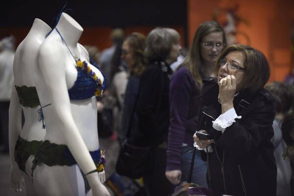 Maria Durigon, who's been coming to the Canada Blooms show for the past few years, takes a closer look at a display at the Wet and Wild area that features designs resembling a bathing suit. Durigon was attending the opening day of the show on March 14 2014. With winter still gripping Ontario, the annual Canada Blooms show opened at the Direct Energy centre on March 14 2014. Visitors to the show came to buy plants and flowers for their gardens and to hear speakers. Many come for inspiration and ideas as well as taking lots of photos of the wide variety of greenery on display. The show runs through to March 23.Fred Lum/The Globe and Mail