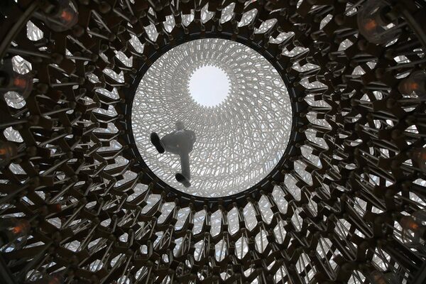 A visitor interacts with Wolfgang Buttress' sculpture The Hive at Kew Gardens in London, Britain.Neil Hall/Reuters