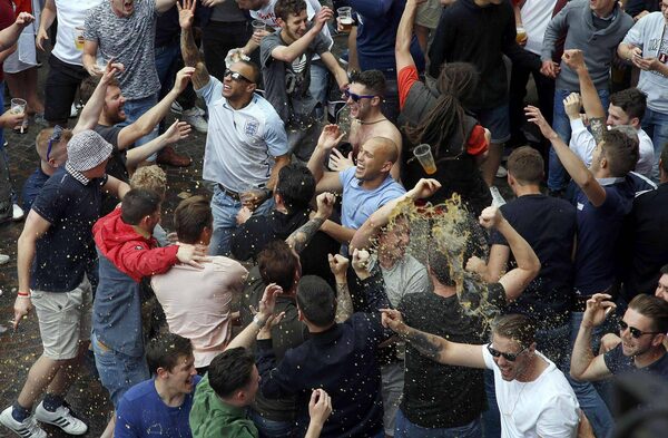 English fans celebrate with beer outside a pub in the city center of Lille during Euro 2016.Pascal Rossignol/Reuters