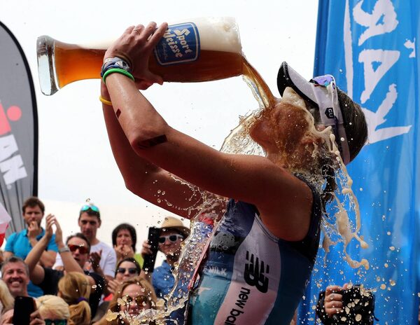 Mirinda Carfrae of Australia celebrates winning the women's race of Ironman Austria in Klagenfurt, Austria.Nigel Roddis/Getty Images