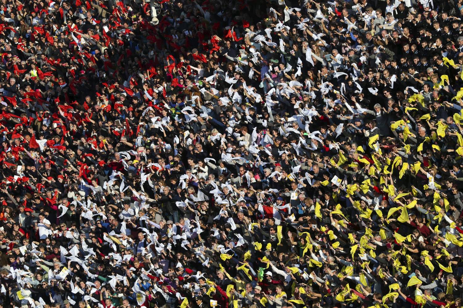 People wave handkerchiefs as they wait for the arrival of Pope Francis at the Artemio Franchi stadium during his visit to Florence.Stefano Rellandini/Reuters