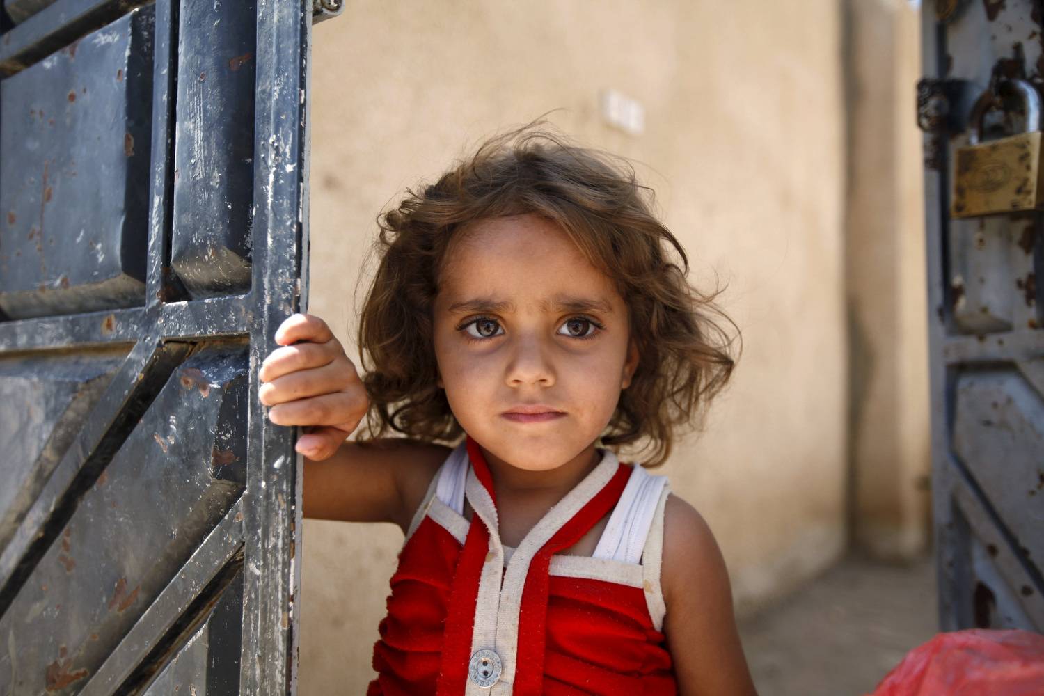A girl looks on after she received polio vaccine drops during a house-to-house vaccination campaign in Yemen's capital Sanaa.Khaled Abdullah/Reuters