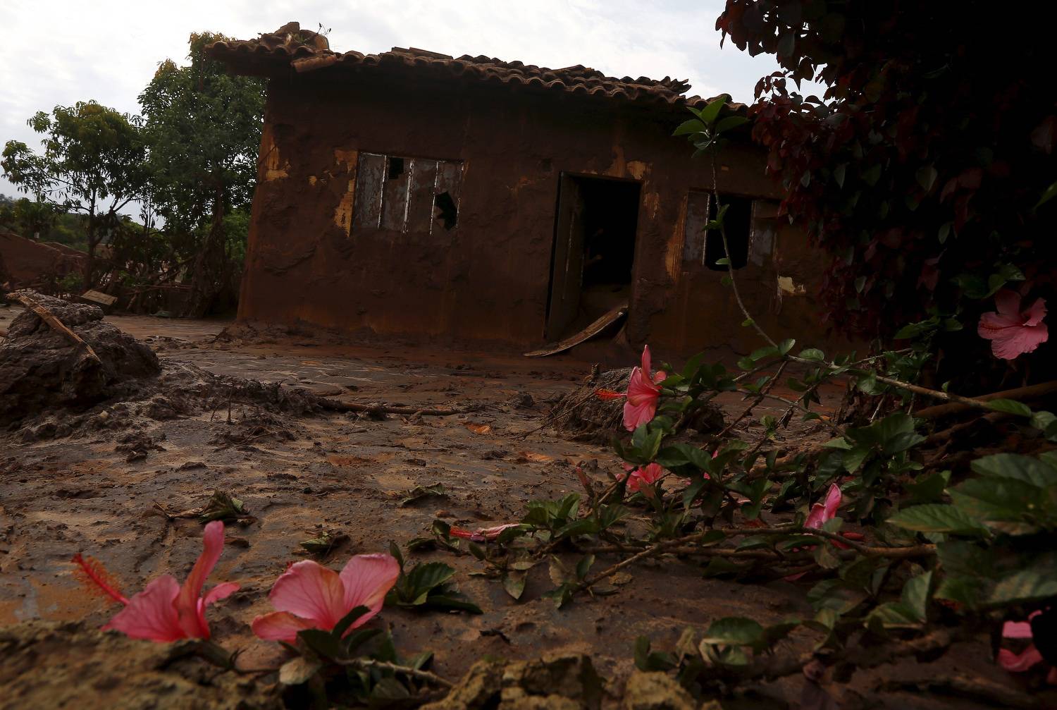 Flowers are seen in the garden of a house, damaged after a dam owned by Vale SA and BHP Billiton Ltd., burst in Mariana, Brazil.Ricardo Moraes/Reuters