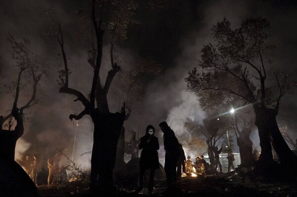 Refugees spend the night in a field on the Greek island of Lesbos.Aris Messinis/AFP / Getty Images