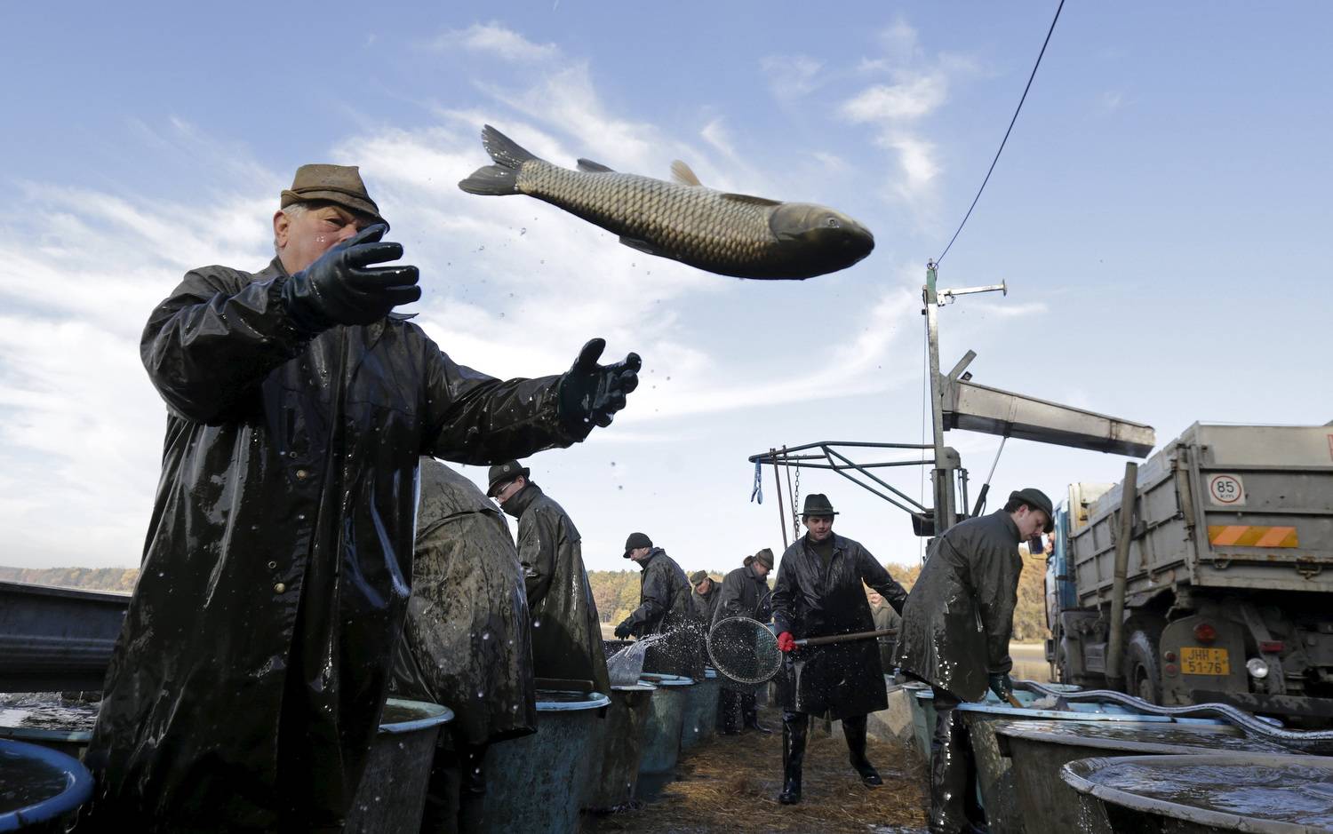 A fisherman throws a fish during the traditional carp haul near Trebon, Czech Republic. Carp is a traditional Christmas Eve dinner.David W. Cerny/Reuters