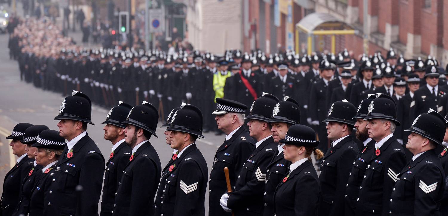 Police parade during the funeral of hit and run victim, Constable David Phillips, 34, at the Anglican Cathedral in Liverpool, England.Richard Stonehouse/Getty Images