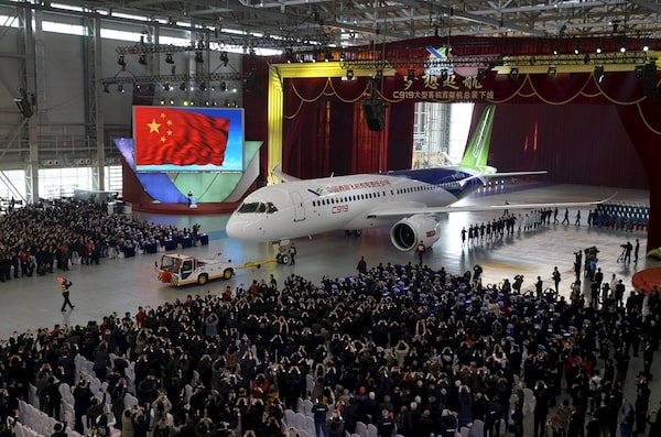 The first C919 passenger jet made by the Commercial Aircraft Corp of China (Comac) is shown at the company's factory in Shanghai.Reuters