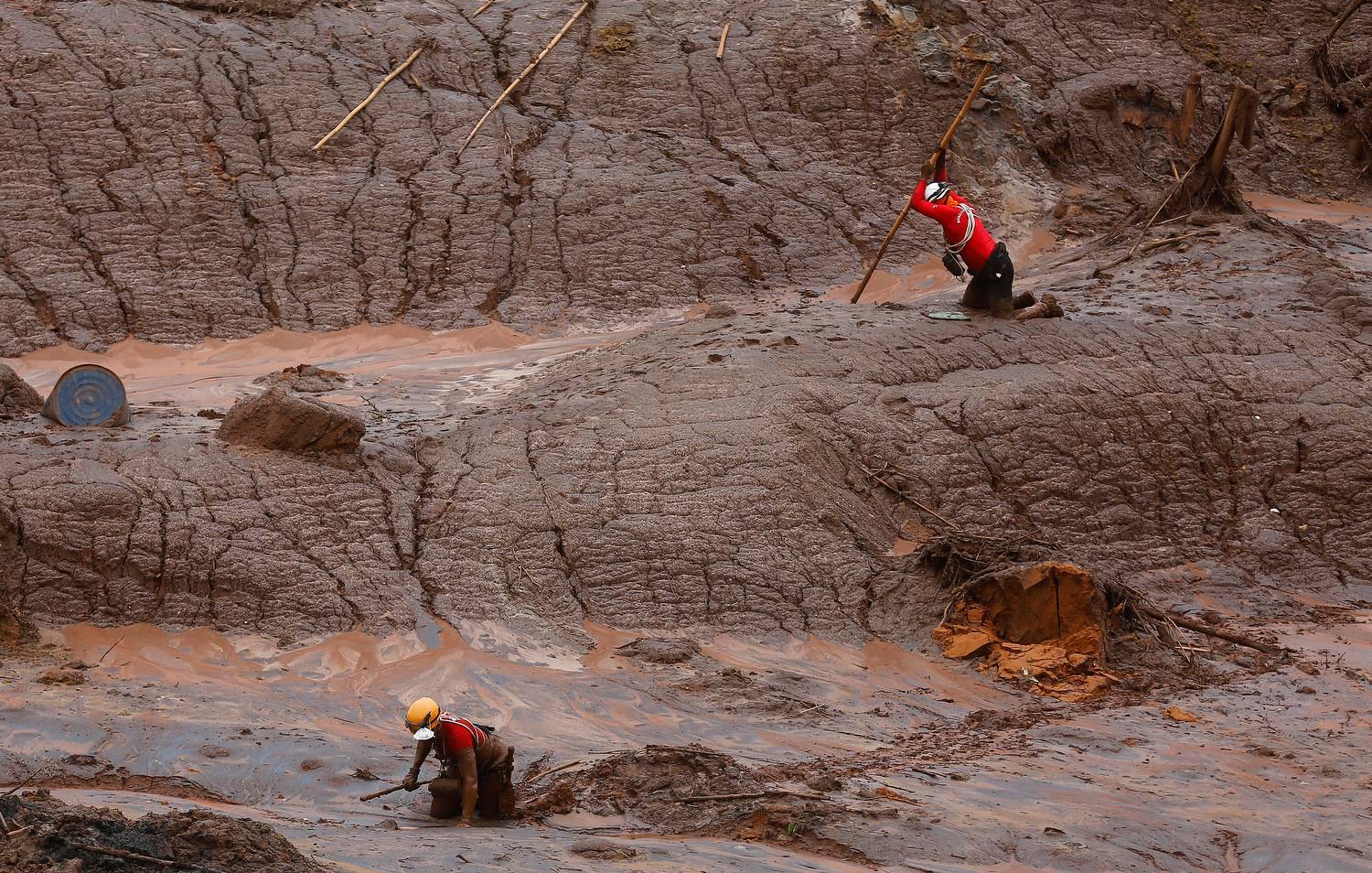 Rescue workers search for victims in the Bento Rodrigues district that was covered with mud after a dam, owned by Vale SA and BHP Billiton Ltd, burst in Mariana, Brazil.Ricardo Morales/Reuters