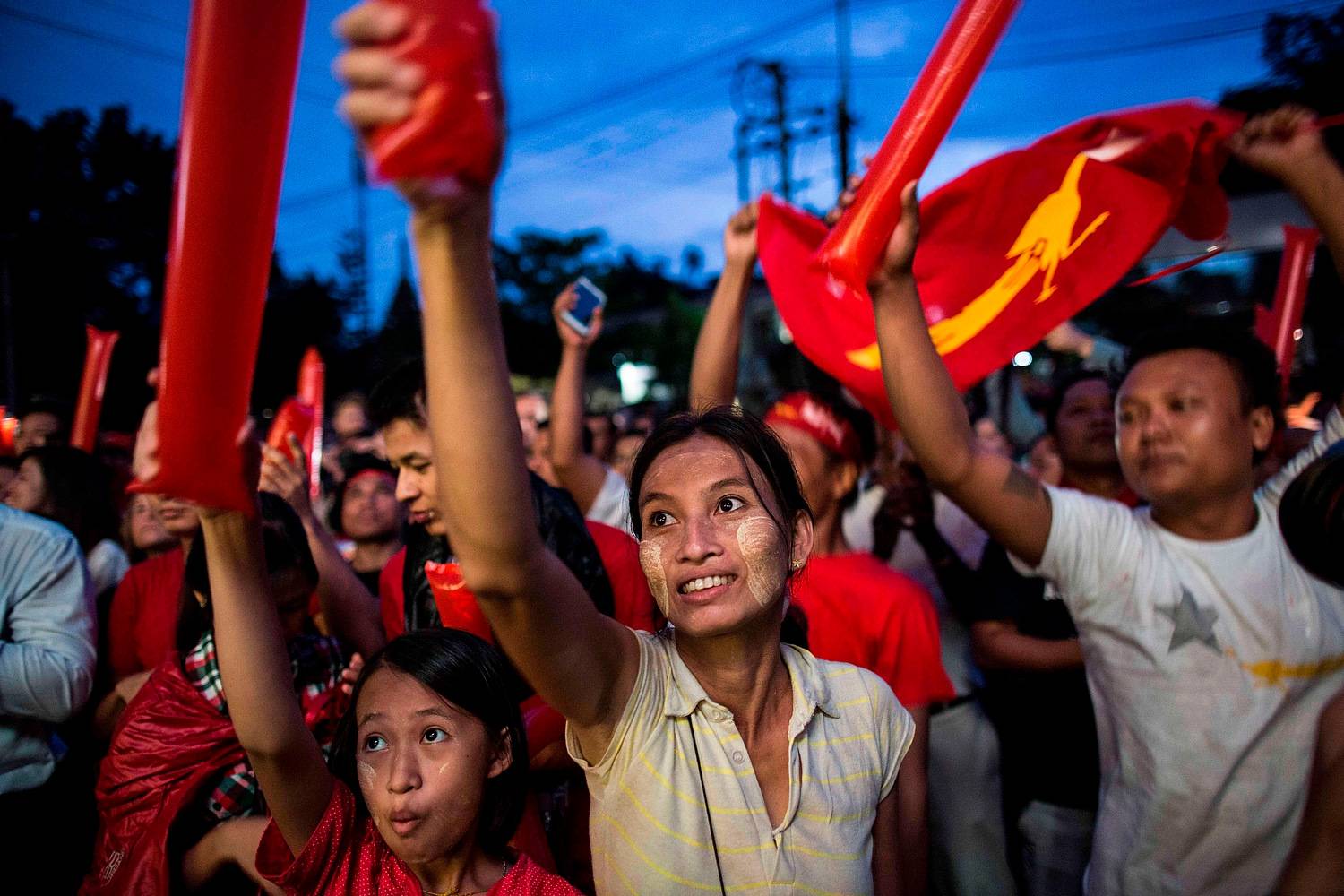 People take part of the rally outside the National League for Democracy (NLD) office after Myanmar's first free and fair election in Yangon, Myanmar.Lam Yik Fei/Getty Images