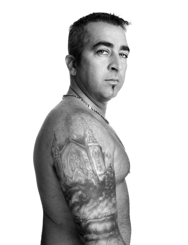 And so we met them and listened to their stories. They agreed to be photographed. In this photo, Christian Lafontaine, 45, poses showing a tattoo of the crash that he now has on his arm. Mr. Lafontaine lost three family members, including his brother, in the inferno. He and his wife, Melanie, were the last to leave the Musi-Café alive.