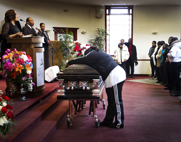 Any tragedy is best seen, and shown, in the grief of those who live on. You could feel the collective grief in the church that day, and there were many images to show it. None was stronger than this: Tyson Bailey’s mother, alone in her grief for a few moments, with her son for the last time.