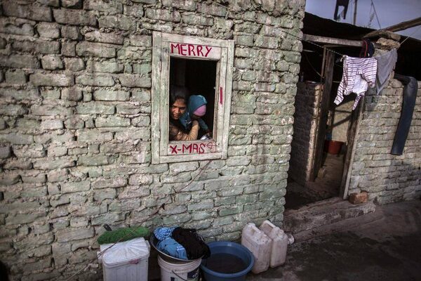 A woman carries her baby as she looks out of her house window in a Christian slum in Islamabad on Christmas eve December 24, 2014.Zohra Bensemra/Reuters