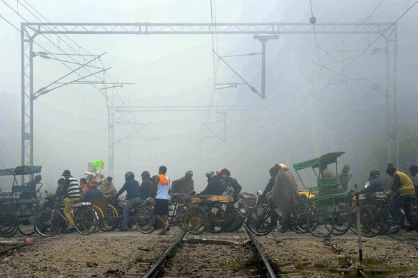 Indian commuters make their way in dense fog, over a railroad crossing in Amritsar on December 24, 2014. Heavy fog has disrupted road, rail and air traffic across northern India.Narinder Nanu/AFP / Getty Images