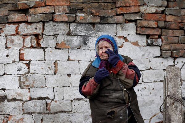A woman wipes tears from her face outside her house that was damaged during recent shelling between Russian-backed separatists and Ukrainian government forces near the town of Vuhlehirsk.Petr David Josek/The Associated Press
