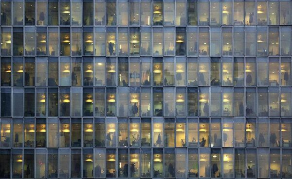 Lights are on as people work in their offices in a skyscraper in downtown Milan.Stefano Rellandini/Reuters