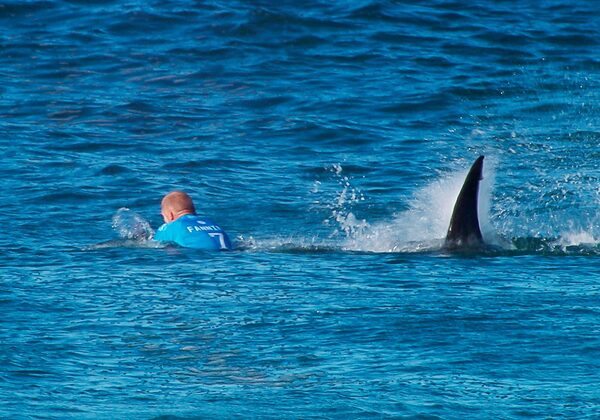 This screengrab made and released by the World Surf League shows Australian surfer Mick Fanning being attacked by a shark during the Final of the JBay surf Open in South Africa.-/AFP / Getty Images