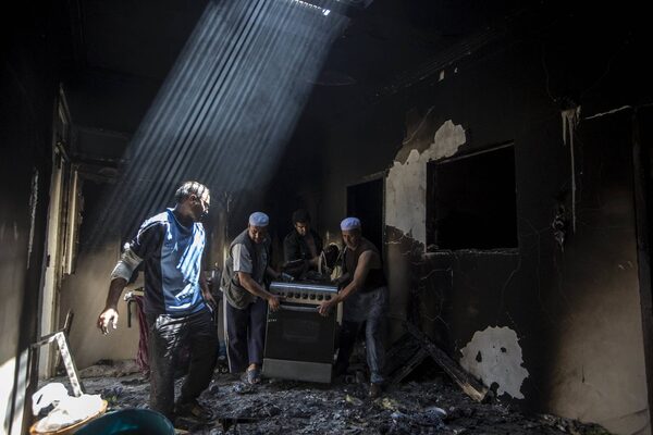 Mozabite Berbers move a cooker at a damaged house after clashes between Arabs and Mozabits near Ghardaia, Algeria. At least 22 people have been killed in ethnic clashes in the flashpoint region where competition for jobs, houses and land is fierce.Zohra Bensemra/Reuters