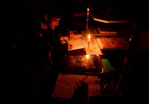 A student works in a dark room in Diyarbakir Turkey. A massive power cut caused chaos Tuesday in large parts of Turkey, shutting down the metro systems in Istanbul and the capital Ankara.Ilyas Akengin/AFP / Getty Images