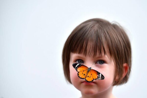 A Tiger butterfly sits on the nose of a child during a photocall in the Natural History Museum's 'Sensational Butterflies' outdoor butterfly house in London, England.Ben Stanstall/AFP / Getty Images
