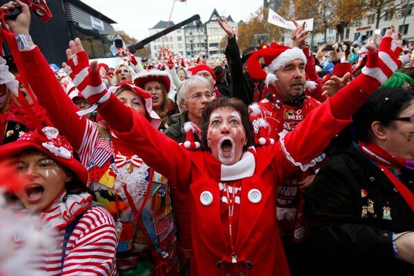 Carnival revellers celebrate the start of the carnival season in Cologne.Wolfgang Rattay/Reuters