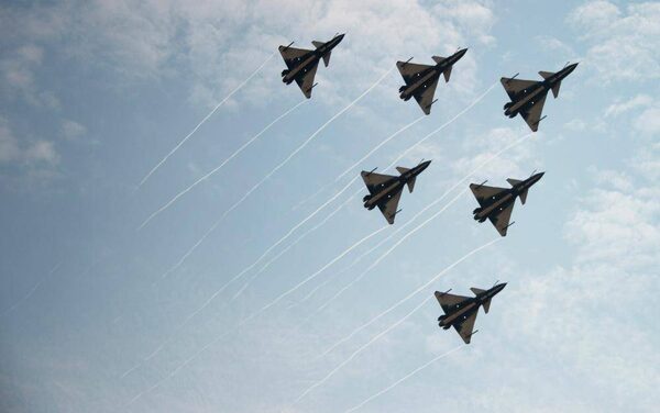 J-10 fighter jets of the Bayi Aerobatic Team of Peoples Liberation Army Air Force perform during a flight at the air show in Zhuhai, China.Johannes Eisele/AFP / Getty Images
