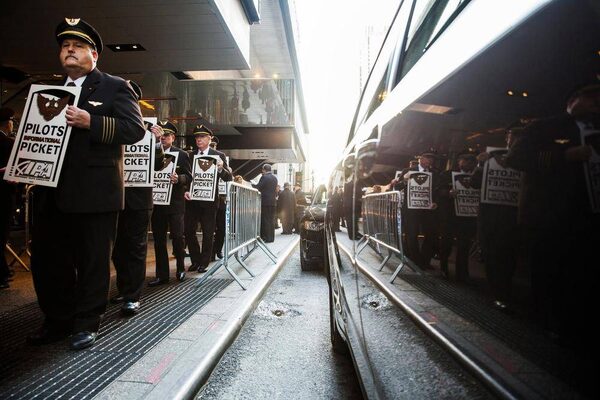 United Parcel Service pilots picket to bring attention to their ongoing labor contract negotiations in New York City.Lucas Jackson/Reuters