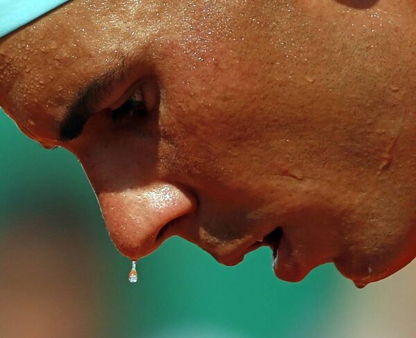 A drop of sweat falls from the face of Rafael Nadal of Spain's during his quarter-final match against his compatriot David Ferrer at the Monte Carlo Masters in Monaco.Eric Gaillard/Reuters