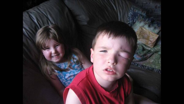 Taken June /10, My daughter seems to be quite delighted at her brother's unfortunate reaction to a mosquitoe bite. (it cleared up in a few days)Don Montgomery