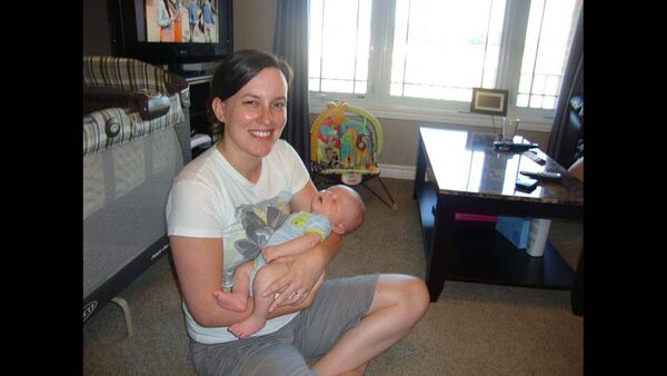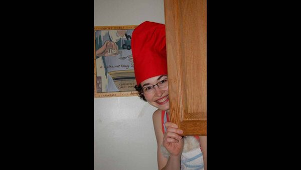 Corrine Vooys of Calgary is captured in her Calgary kitchen with dinner in her arms. The Vooys family hosted several families for dinner on Feb. 25.Richard Erlendson