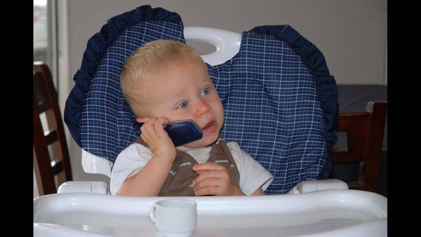Grandson Jachin, playing with Grandma's cell phone as he waited for his meal.Susan Deneve