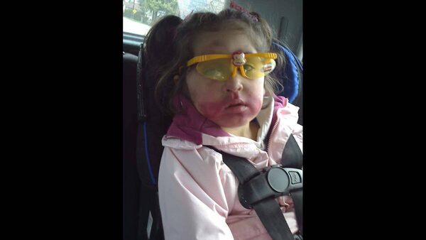 My daughter Eve was freaking out after a birthday party (monkey sunglasses were in the loot bag) I gave her my lipstick to try to distract her (what was I thinking?)Claudia Leopold