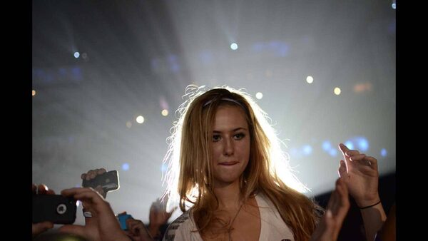 A crowdsurfer works her way to the front of the crowd for the DJ Skrillex, playing live at Flames Central in CalgaryDerek Neumeier